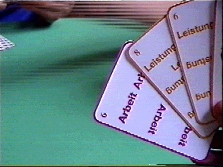 Ein Kartenspiel am grünen Tisch als Kommentar zur schwarzblauen (ÖVP/FPÖ) Familienpolitik, begleitet von assoziativer Lyrik, die sich als Destillat phrasenhafter Gewaltrhetorik versteht. (Stefan Grissemann)