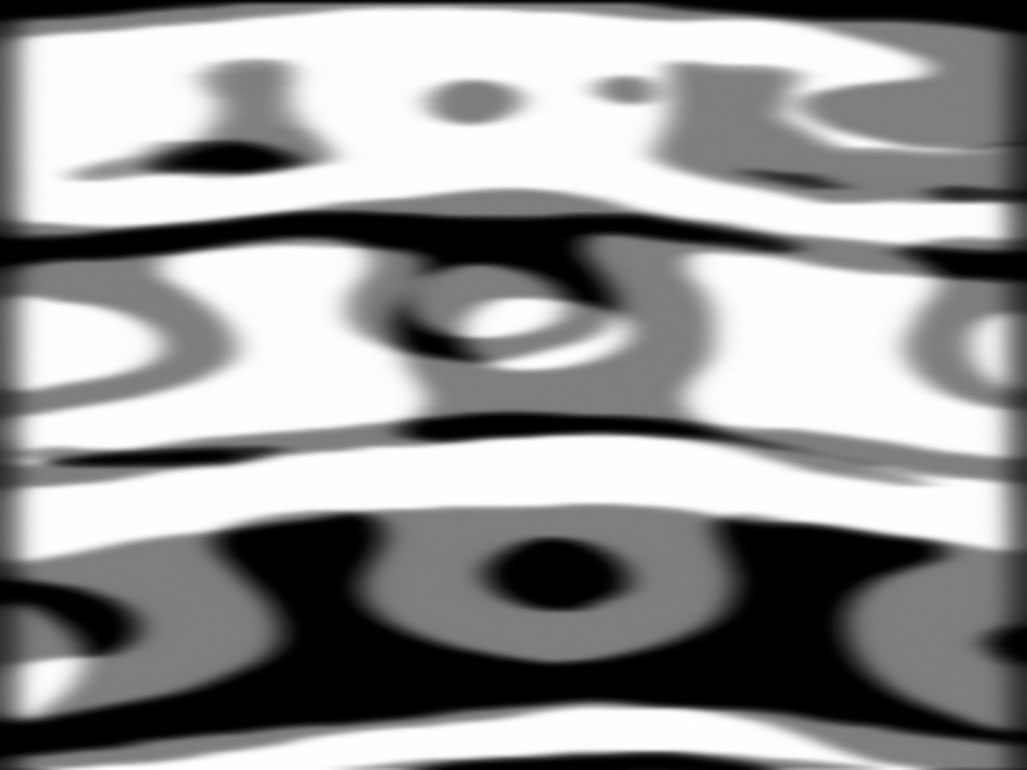 Ausgangsmaterial ist ein schwarz/weiß Video (Feedback, 1:55 min), generiert mit einer Videokamera, die auf den Bildrand eines Monitors gerichtet wird mit dem sie gleichzeitig verbunden ist. „Hinter den Horizont blickend … zum unendlich fernen Punkt“ wird ein Rückkoppelungsprozess in Gang gesetzt, bei dem der Bildrand des Monitors zum Ereignishorizont wird.
