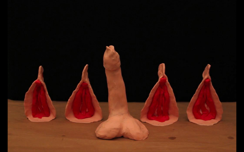 Die Intrige und die Archenmuscheln nackte Tatsachen: Ein singender Penis performt auf einer Bühne, Vaginas bewegen sich dazu im Takt der Musik, flattern mit den Schamlippen und umgarnen den Penis-Rockstar. Den Sound dazu liefert der Song "Have Love, will Travel" der Gruppe "The Sonics", die seit den frühen 1960er Jahren mit Liedern wie "The Witch", "Psycho", "Cinderella" oder "He´s Waiting" Erfolge feierten, als Paradebeispiele des Garage-Rock gelten und in den späten 1970ern ein Revival als Garage-Punk-Band erlebten. Ayubs Clay-Animation als Persiflage von Auftritten genau dieser Kultband zu antizipieren, wäre allerdings zu kurz gegriffen. Die Filmemacherin zeigt lustvoll generelle Performance-Strategien des Rock n´Rolls auf und bringt schonungslos auf den Punkt, was sonst im wahrsten Sinne des Wortes verhüllt ist: eine Hervorkehrung des männlichen, unwiderstehlichen Sexappeals in Form von machoiden Klischees auf der Bühne, unterstützt von weiblichem Groupieverhalten. Als zentrales Motiv des Filmes kann die Textzeile "No matter when, no matter where I´ll be, I´m looking for a woman that´ll satisfy me" verstanden werden. Der nicht ganz jugendfreie Kommentar erinnert dabei an den Claymation-Film Tiger licking Girl´s Butt (2004) der Künstlerin Nathalie Djurberg, die die ZuseherInnen "mit komplementären Themenpaaren wie Macht – Ohnmacht, Fürsorge – Missbrauch, Gewalt – Liebe, Masochismus – Sadismus, Monstrosität – Verletzlichkeit konfrontiert." (Franziska Bruckner)
