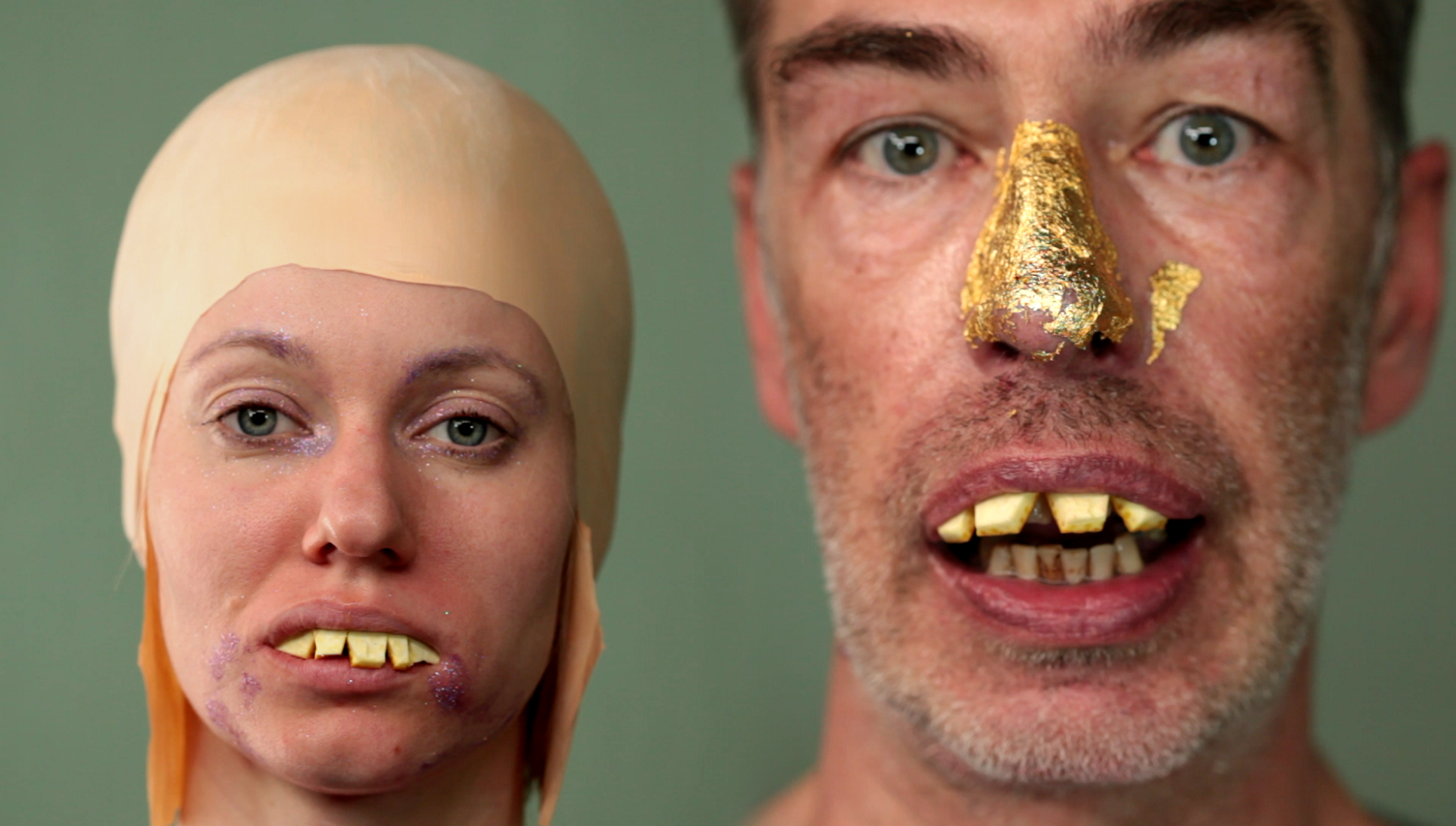 Zwischen dem Verbrecher und dem Fratzen schneidenden Narren kippt auch der 12-Minüter Horns von Beginn an: Denn die kriminologisch für das Klassifizieren in ein Schema gepressten Gesichter dreier Männer und dreier Frauen werden bald aufmüpfig. Da gellt ein Schrei, dort blitzt keck eine Zungenspitze hervor, Augen schielen. Ob Posse oder Drama, darüber kann man sich nie sicher sein. Ständig kippt die Stimmung. In den kurzen Einstellungen werden Haare fast zärtlich gebürstet, Zähne geputzt. Aber in diese Szenen der Zuwendung und Pflege mischen sich rasch Gesten, die das Gesicht entstellen, der Lächerlichkeit preisgeben, ihm Gewalt antun. Das Antlitz wird verschnürt, wird dekoriert. Würgen folgt Lachen. Die Indizien sind verwirrend. Was passiert hier? Medizinische Untersuchung? Spaß? Folter? Herrscht Einverständnis? Auch die Musik legt verschiedene Fährten.