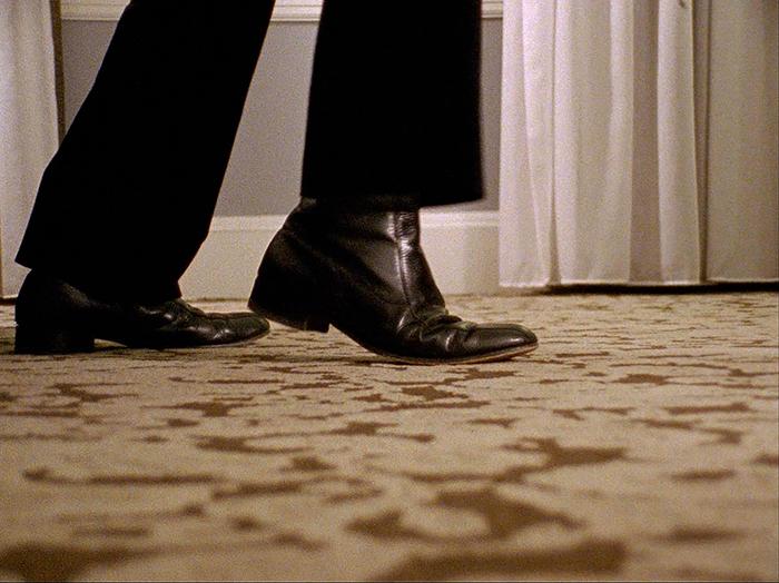 Dabei sticht der aufwändig in Blau, Gelb und Creme gemusterte Teppichboden des Hotels ins Auge. Seine haptische Qualität wird bei einer anderen Montage-Sequenz ins Bild übersetzt: eine Hand streicht über ein Fensterbrett, eine andere über einen Gitarrenhals, eine weitere über die Armlehne eines Sofas. Es sind Bilder, die die Geister der Vergangenheit eines Ortes zu fassen versuchen, im konkreten Fall jene des Biltmore Hotels in Downtown Los Angeles. Schauplatz früher Oscarverleihungen wie auch der Anhörung von Eisler zu Beginn der McCarthy-Ära wird es zum Dreh- und Angelpunkt des Films.