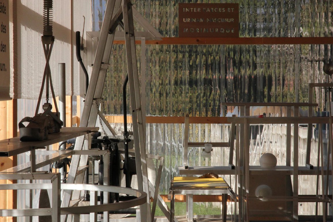 Cornelius Kolig’s “paradise” could also be examined from above. One would see an organic building-structure comprising a Sistine chapel, a pantheon, cow and pig stalls, and “a wild intoxicating garden” on a total area of 6,000 square meters.