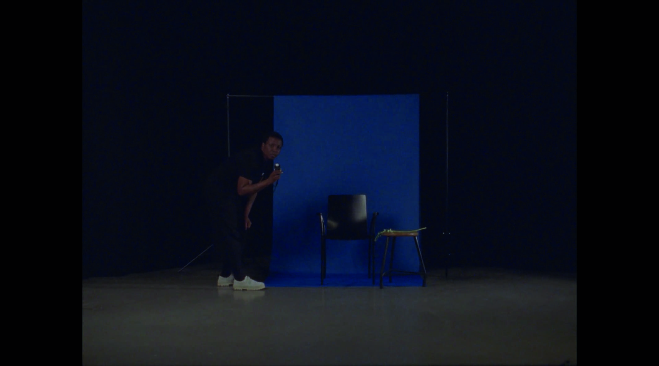 Artist-performer Belinda Kazeem-Kamiński enters the frame, holding a light meter, looking directly at the camera.